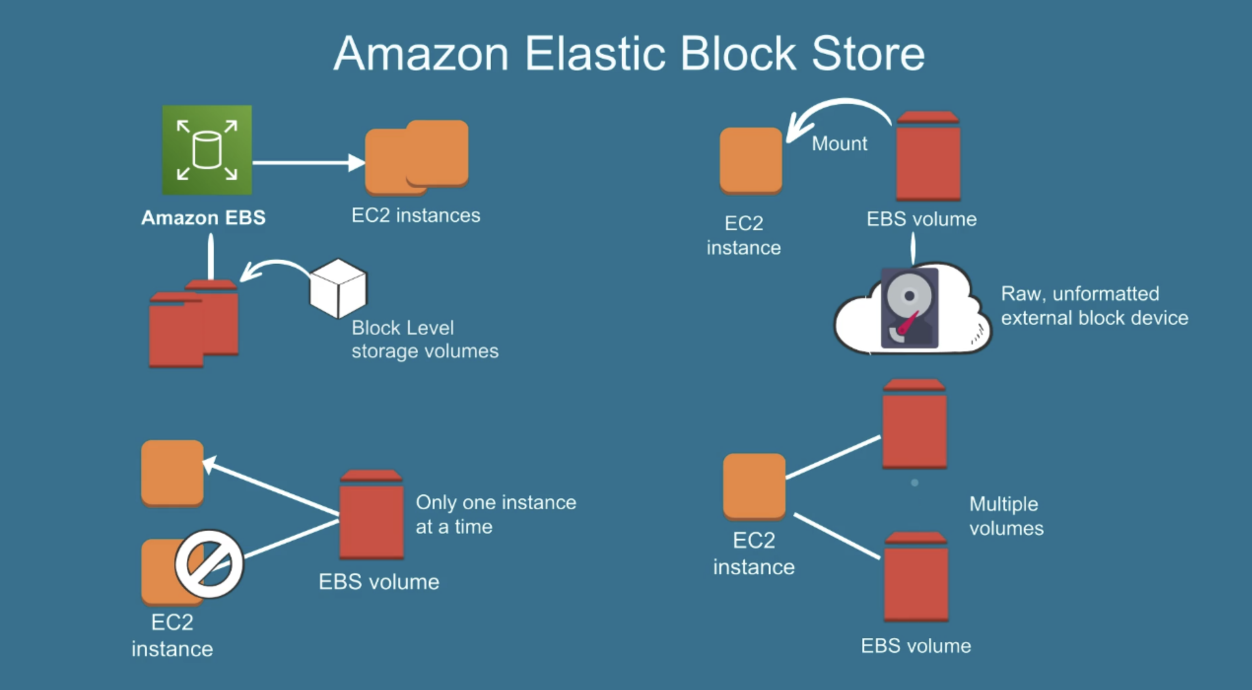 - 하나의 EBS 볼륨은 동시에 하나의 EC2 인스턴스만 연결